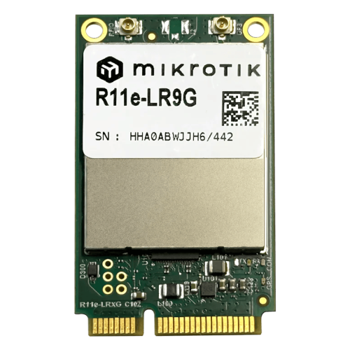 MikroTik R11e-LR9G — концентраторная карта LoRa® нового поколения в форм-факторе miniPCIe, совместимая с любым устройством MikroTik, оснащённым слотом miniPCIe и линиями USB. Ключевым отличием от предыдущего поколения является встроенный модуль GPS (интерфейс MT3337V), что делает карту оптимальным решением для мобильных развёртываний и сценариев, где геолокация или временна́я синхронизация являются обязательными требованиями.